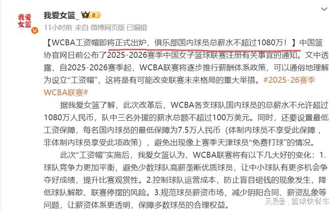 中国女篮终于迎来重磅利好。根据知情人士透露,WCBA女篮联赛新赛季将会有重大变化,这其中一支球队女篮球员总薪资不能超过1080万。很显然,这一次变动,最为吃亏的是四川队这种豪门球队,而最大的受益者则是WCBA联赛中下游球队,他们因此也将获得一定的竞争力。而作为女篮国家队主帅,宫鲁鸣也是举双手赞成的,毕竟,他最为憎恶的便是女篮抱团模式。
