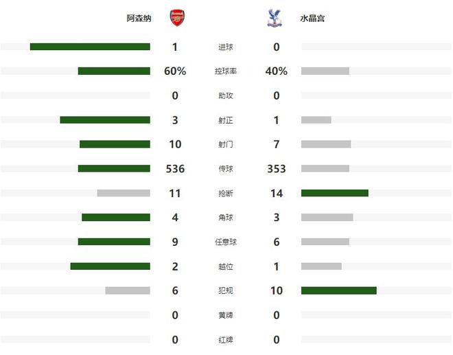 余下的时间,两支球队都创造出了不少有威胁的机会,可惜都没有能够转化为进球,这显然是阿森纳更加愿意看到的结局,如愿以偿在主场拿到了三分。