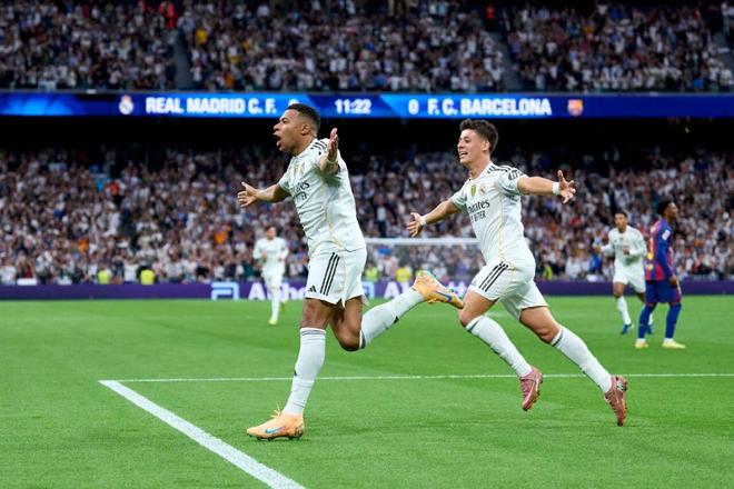 此役,皇马在主场面对死敌巴萨,比赛开始后皇马的攻势如虹!比赛第12分钟,姆巴佩在禁区外凌空正脚背轰入世界波,但他因稍微越位在先,因此进球无效。不过到了第22分钟,贝林厄姆送直塞,姆巴佩利用自身的速度优势甩开巴萨整个防线形成单刀,杀入禁区推射破门得分,皇马1-0领先巴萨。