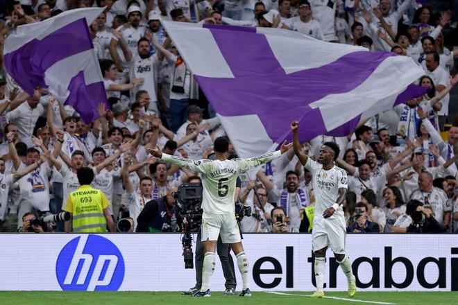 第43分钟,米利唐在禁区头球摆渡,门前的贝林厄姆破门,自从贝林厄姆伤愈复出后逐渐找回状态,本场已1助攻1进球,他以22岁119天成为本世纪国家德比单场传射最年轻的皇马球员。皇马2-1再次领先巴萨。